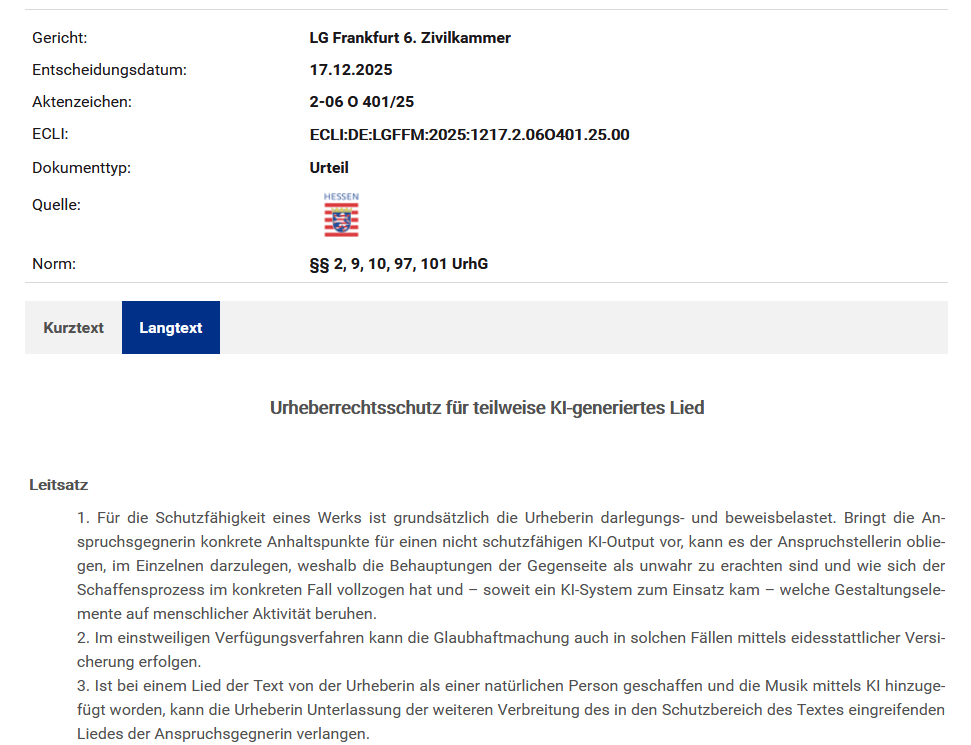Urheberschutz und KI: Ein mit KI geschaffenes Lied kann Urheberschutz geniessenVon Sven_Kohlmeier|2026-03-13T09:10:26+01:0013. März 2026|Kategorien: Allgemein, Grenzrecht, IT-Recht|WeiterlesenKommentare deaktiviert für Urheberschutz und KI: Ein mit KI geschaffenes Lied kann Urheberschutz geniessen